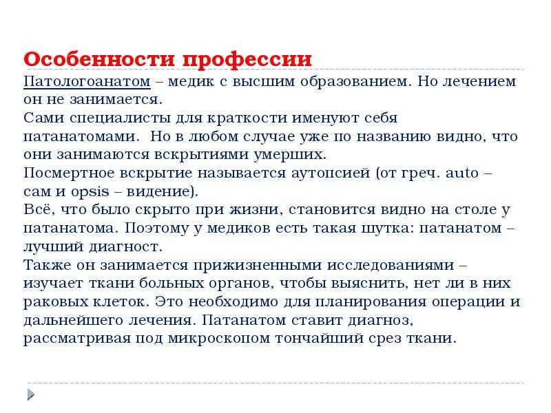 Особенности профессии