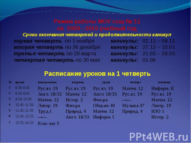Школа 20 г. Рязани – Календарный учебный график