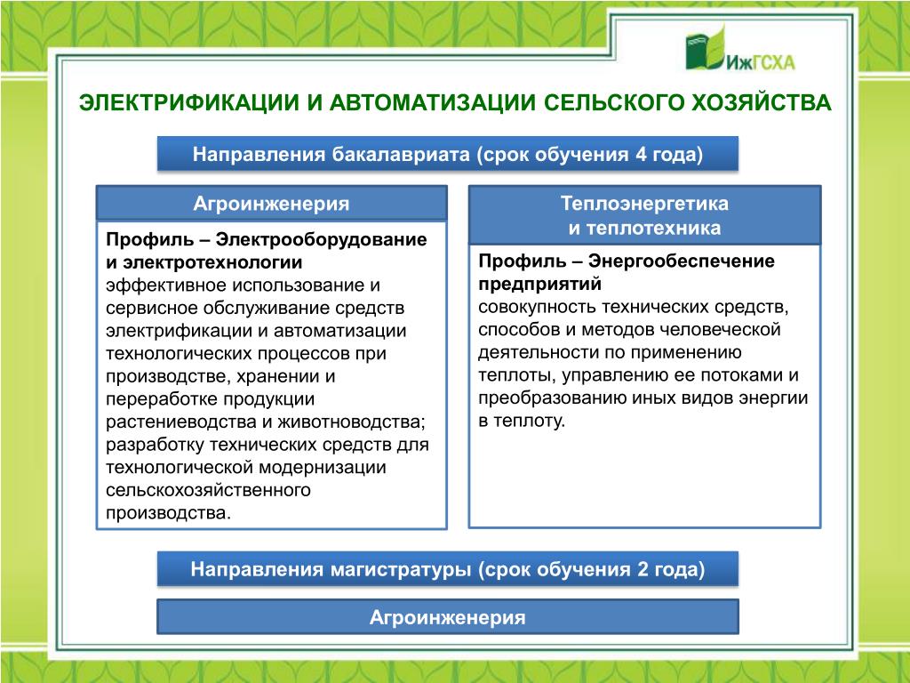 - Организация эффективного применения автоматики и машин в сельском хозяйстве;