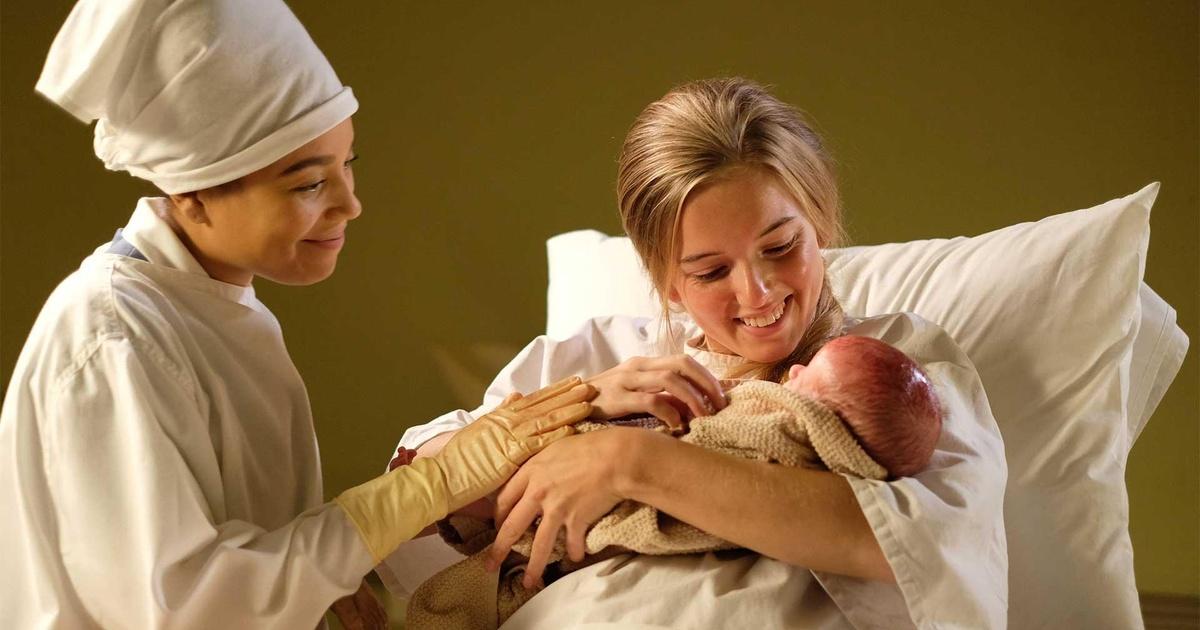 frau nach der geburt mit baby – obgyn stock-part,-client-part,-grafiken -cartoons und -symboleFrau nach der Geburt mit Baby