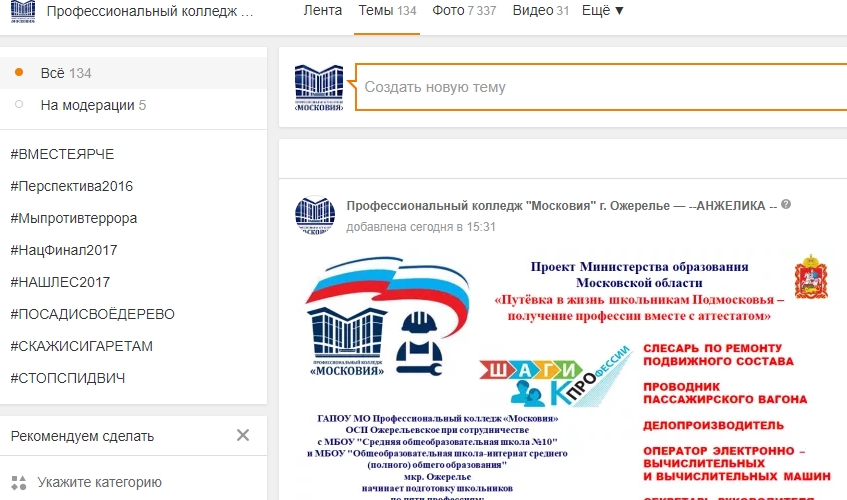 ГАПОУ МО «Профессиональный колледж «Московия», Профессиональный колледж «Московия» — Учёба.ру