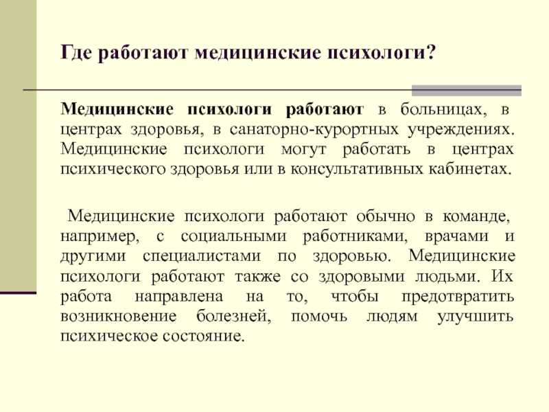 Клинический психолог также проводит психологическую экспертизу: школьно-педагогическую, военную, врачебно-трудовую, судебно-психиатрическую.
