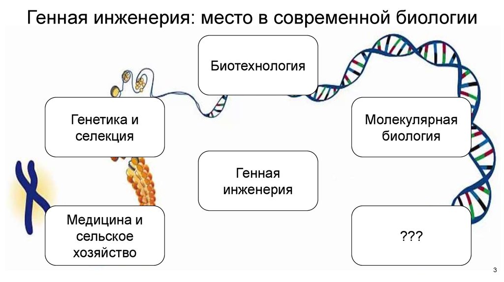 Поэтому можно сказать, что генная инженерия использует достижения различных научных дисциплин (молекулярной и клеточной биологии, микробиологии, генетики, вирусологии) и применяет их на практике в медицине, сельском хозяйстве и других важных аспектах жизни человека.