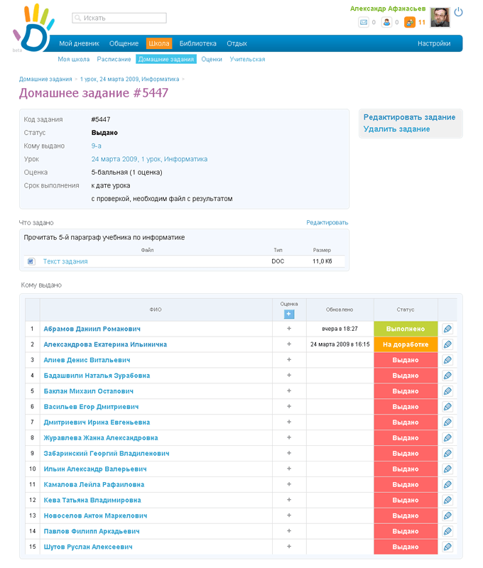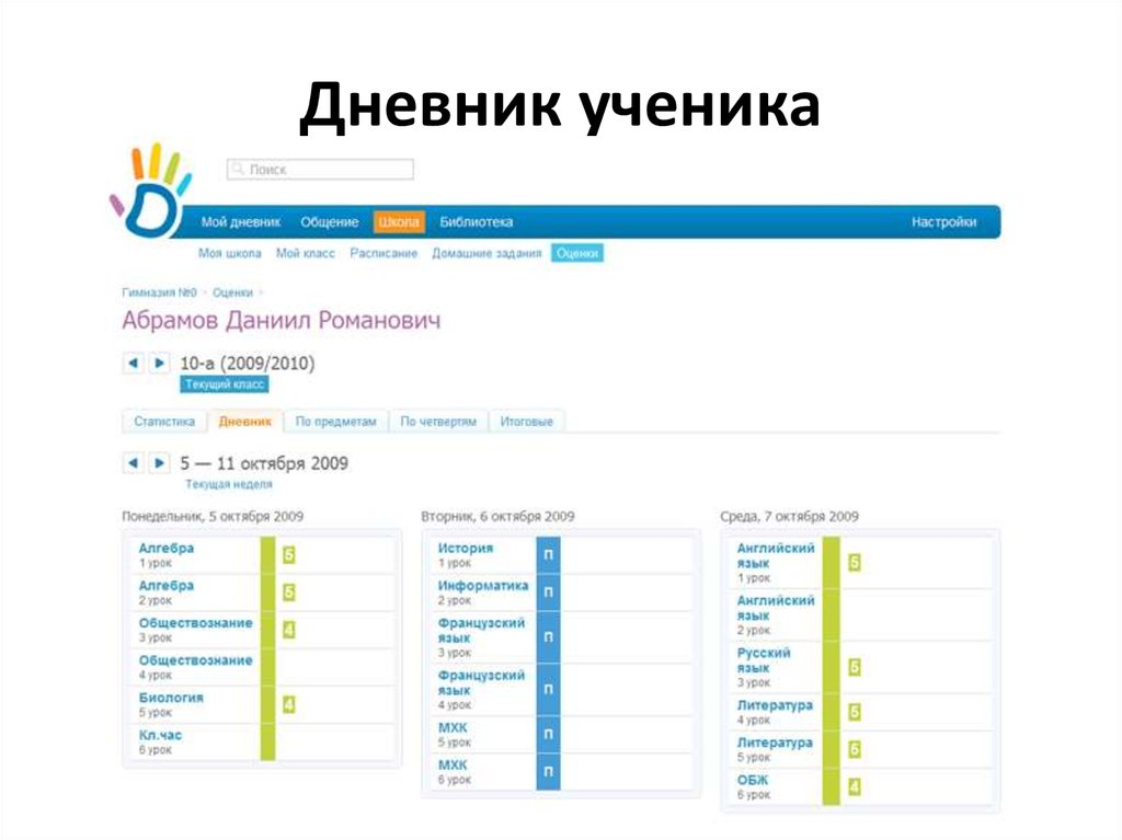 Они могут контролировать режим посещений, расписание уроков, полученные задания, оценки, графики будущих контрольных и т.д.; - Ученикам же ЭЖД полностью заменяет традиционный бумажный дневник, в который они записывают домашку, получают оценки, фиксируют расписание.