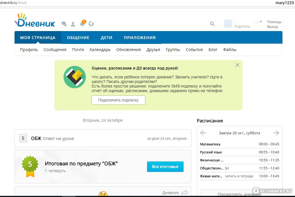 Так выглядит один из вариантов просмотра дневника учителя.Источник: diary.ru