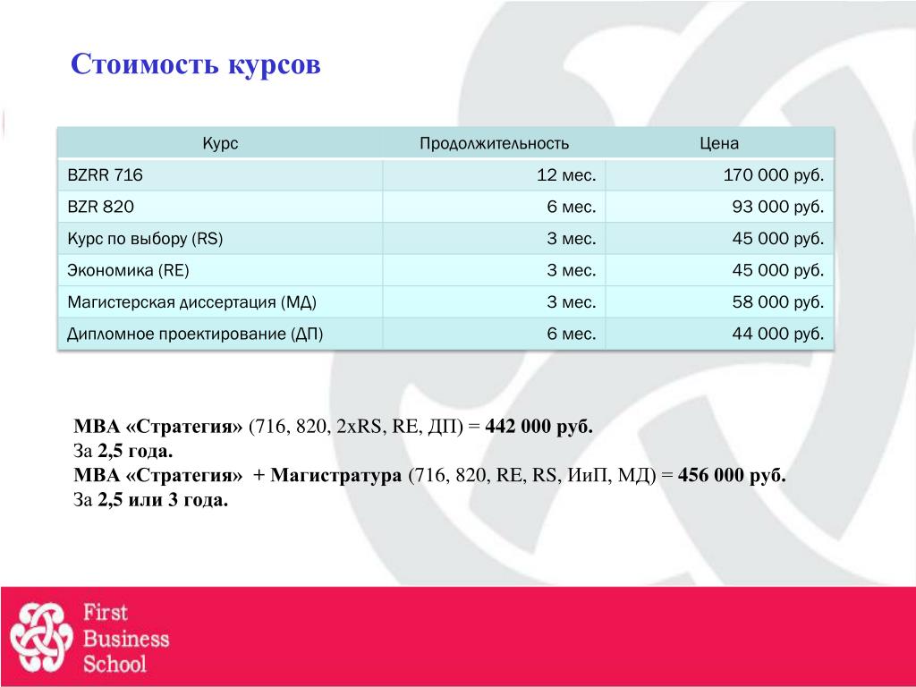 Сколько стоит обучение по программе MBA в России?