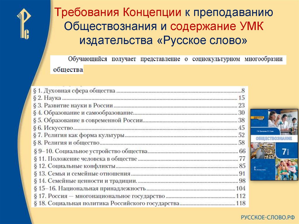 | 1 | В Концепции преподавания учебного предмета «Обществознание» представлены цели, задачи, основные принципы и направления совершенствования преподавания обществознания в образовательных организациях в Российской Федерации. |