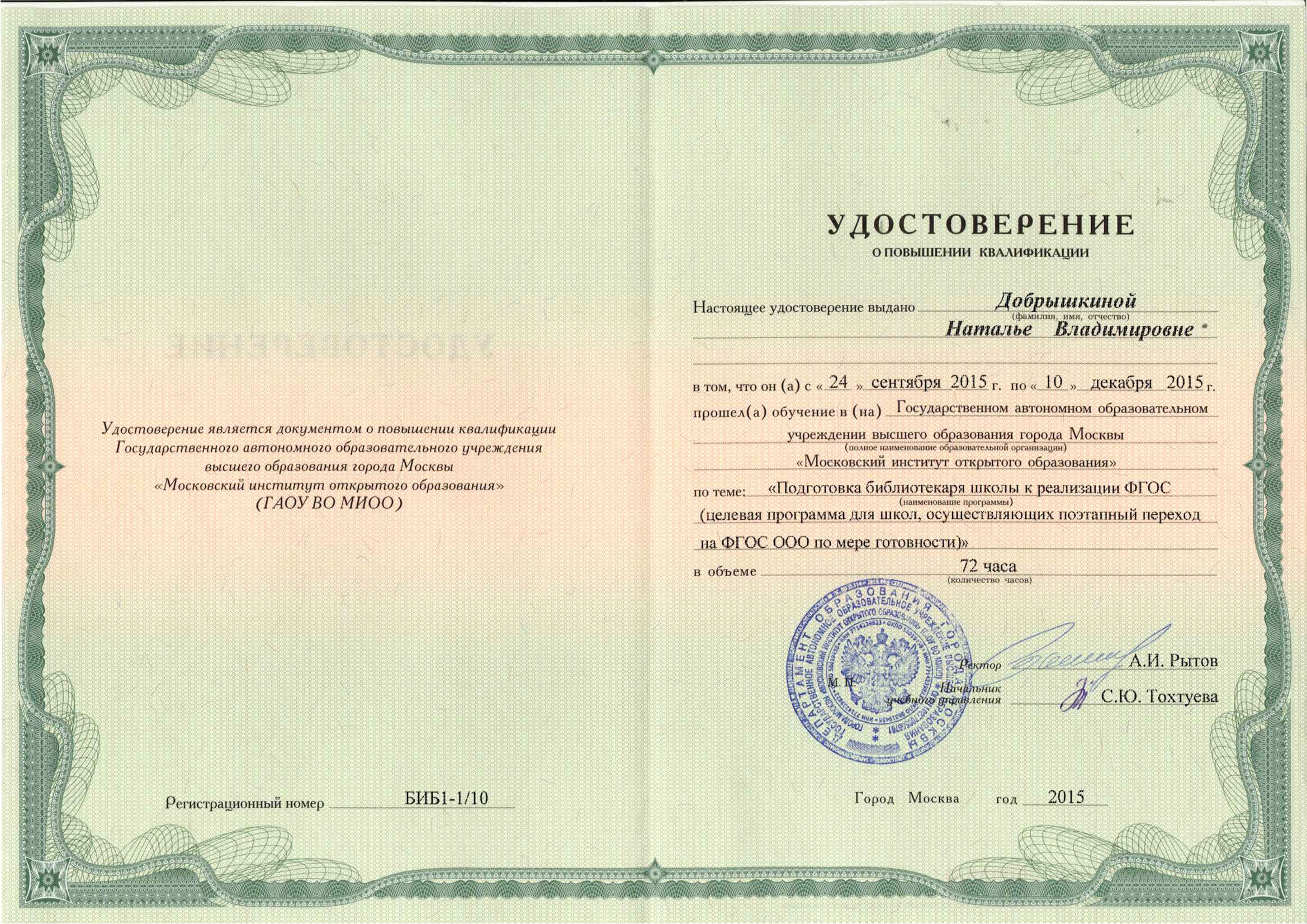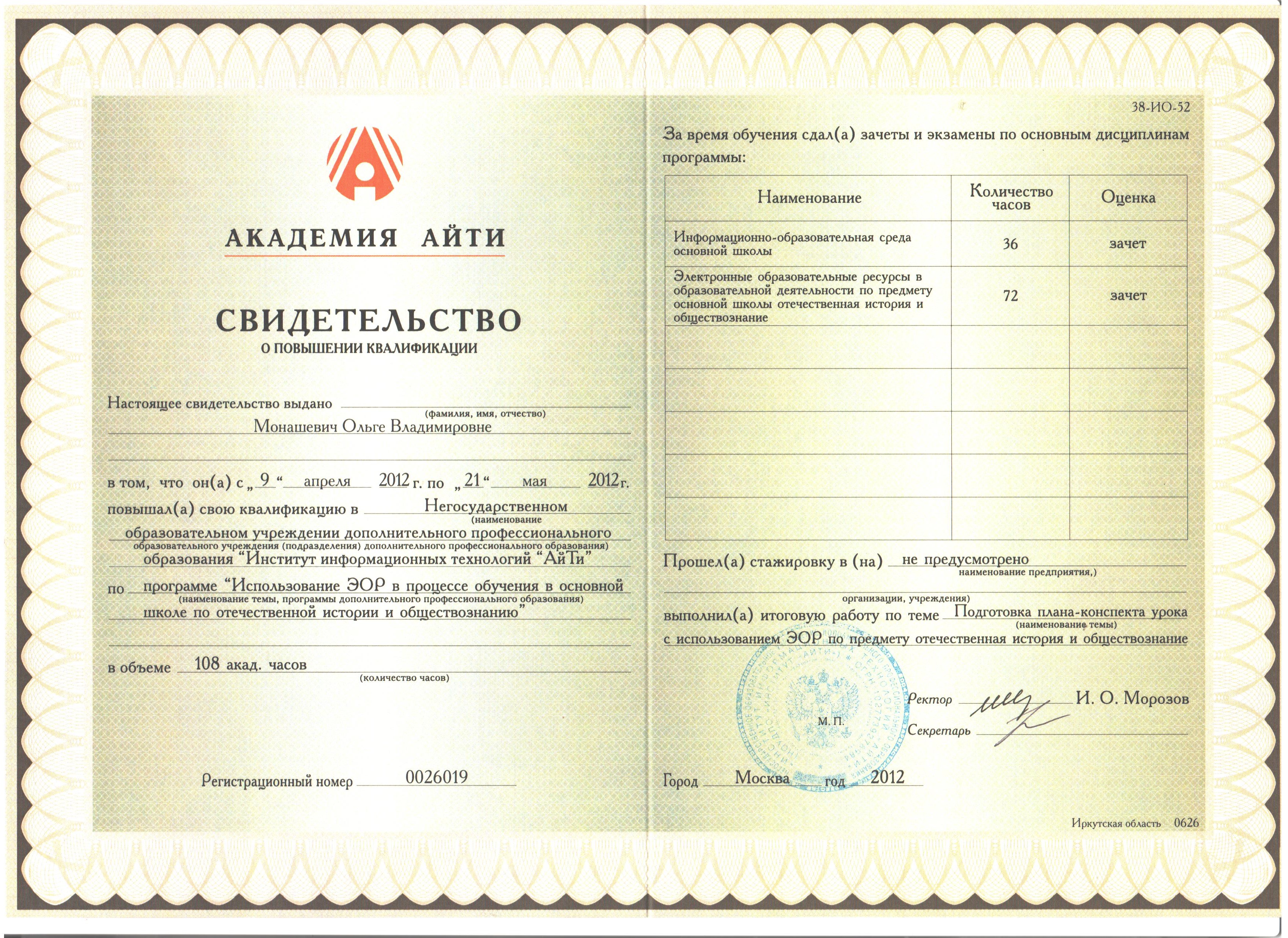 Объём занятий – не менее 72 часов. Документ об образовании – Удостоверение о краткосрочном повышении квалификации.