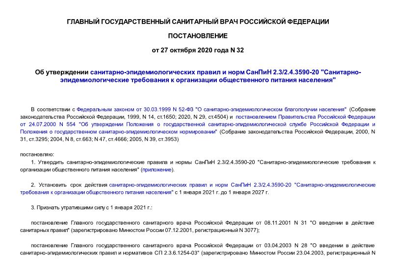 3590-20 «Санитарно-эпидемиологические требования к организации общественного питания населения»