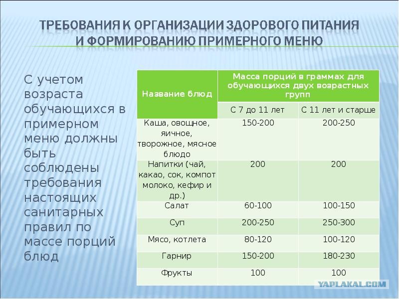 Также на федеральном уровне регулируют качество питания в школах: