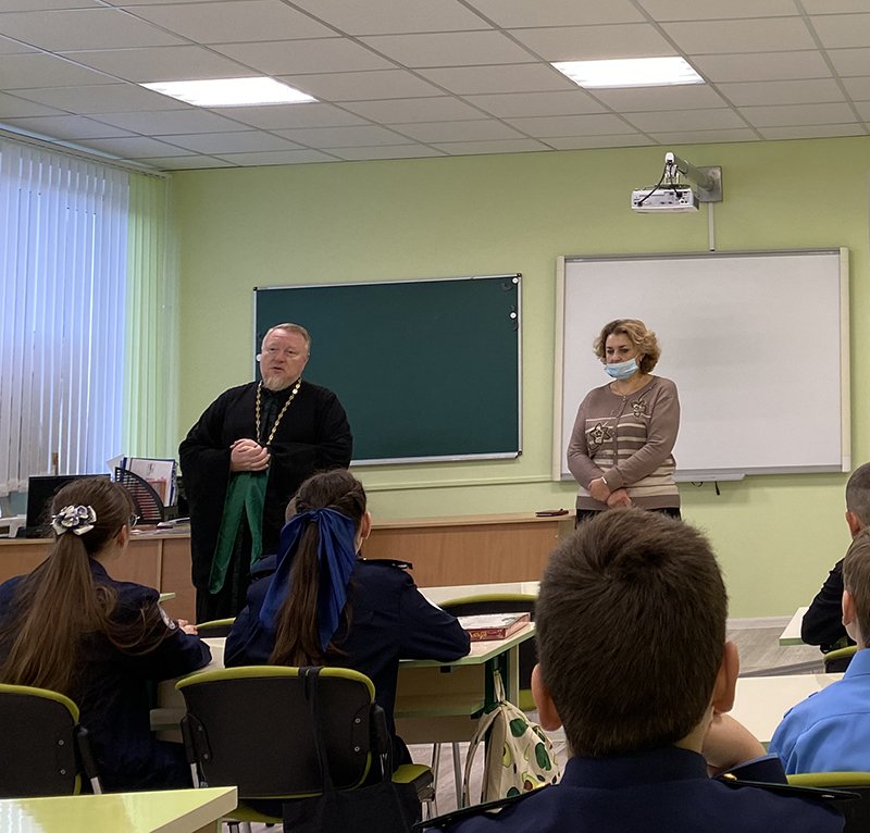 После трапезы ученица 9 класс Зыряева Варвара задала несколько вопросов семинаристу Илье. Илья студент подготовительного отделения высшей формы обучения, направление бакалавриат по специальности теология. Поделился с нами распорядком дня учащихся: день начинается и заканчивается молитвой, затем пары, где ребята изучают общую церковную историю, библейскую историю, историю России, церковно славянский язык и другие богословские предметы. Илья поделился планами на будущее, стать священником. Большое количество времени занимает учеба, подготовка к семинарам, приезду Владыки. Илья рассказал, что и здоровому образу жизни студенты уделяют, не мало времени, в семинарии есть спортивный зал.