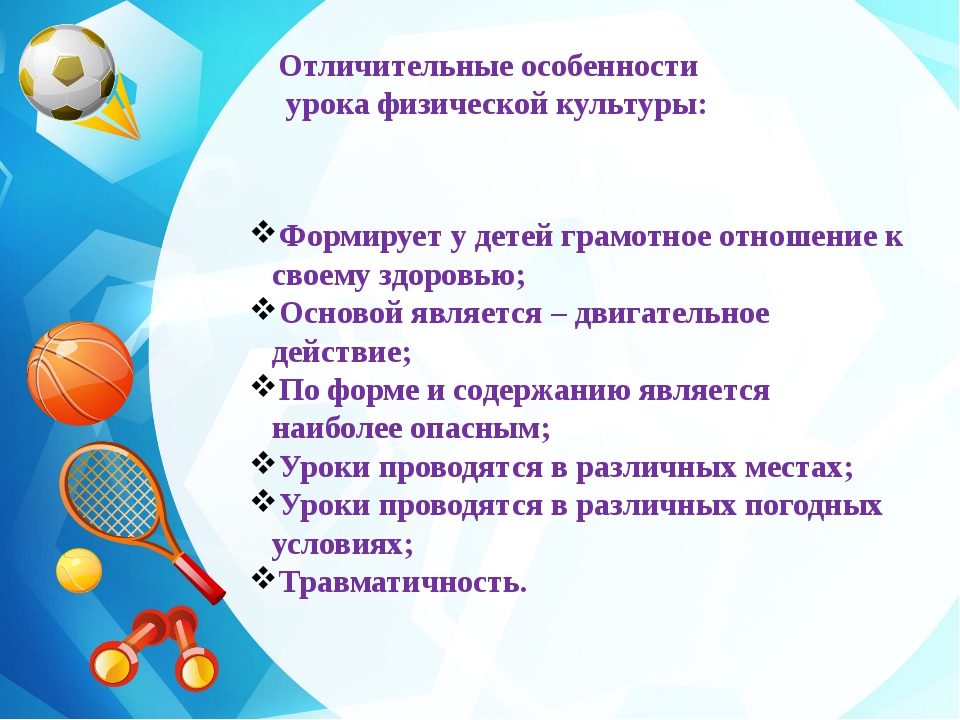 Главной задачей учителя физической культуры является организация детей. Затем они изучают главные навыки, подходящие им по возрасту, и особенности физиологического развития. Любой школьник должен осознать, что физические упражнения не только укрепляют общее состояние здоровья, но и подбадривают. Чтобы эти параметры были соблюдены, необходимо быть физически активным не только в школе, но и дома, выполняя физические упражнения с родителями.