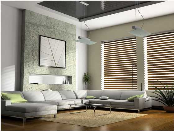Цветовая гамма светлая – беж, серый, белый. Допускается один яркий акцент. Как правило, это картина в жанре абстракции. Все главные позиции занимает техника – телевизор, музыкальный центр, домашний кинотеатр и др. Люстры и прочие светильники подбираются небольших размеров. Элементов декора должно быть минимум.